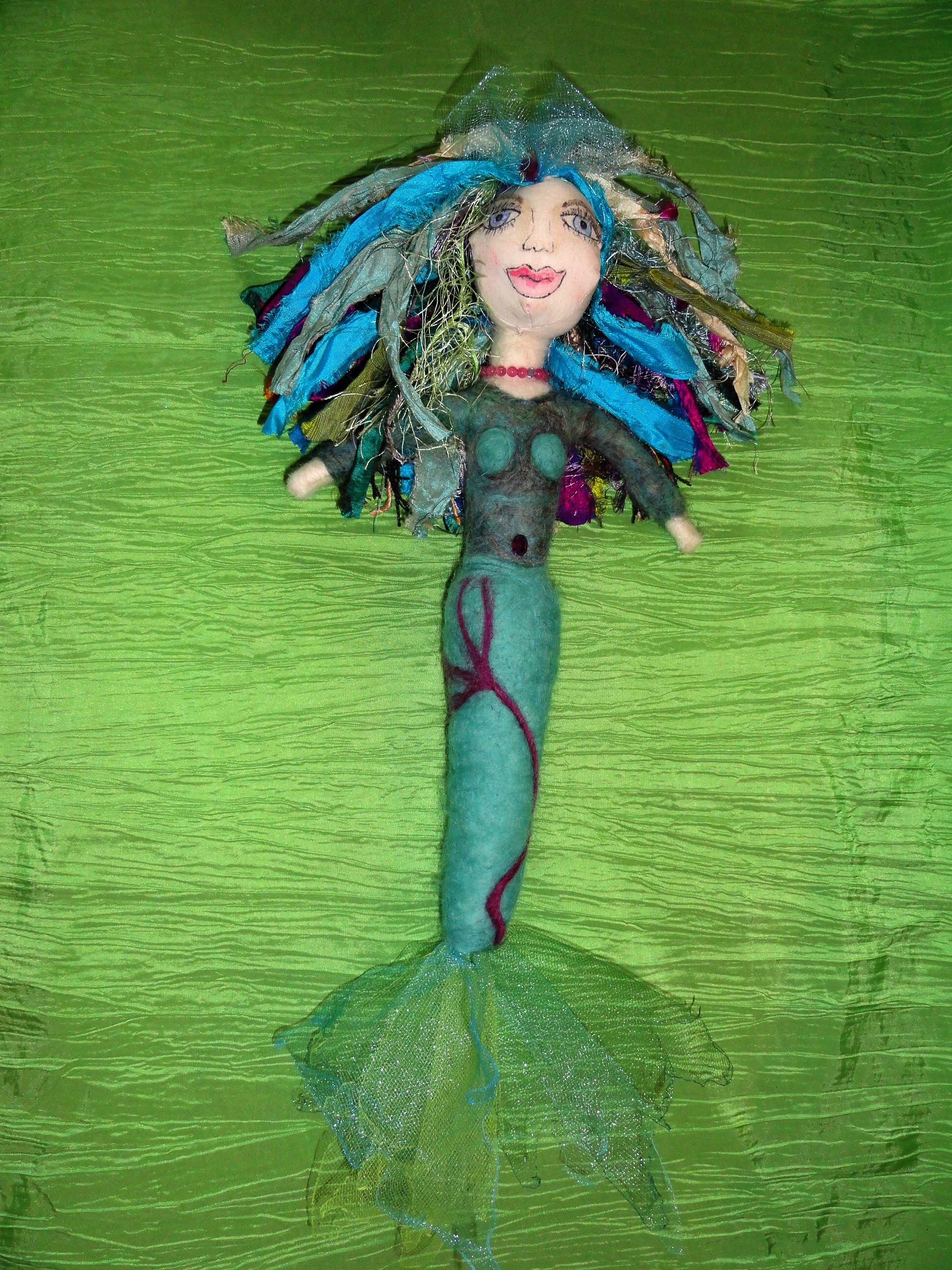 Milicent, the pregnant mermaid. Made completely of felted wool. She is very hug-able and would make a good doll for a young child.