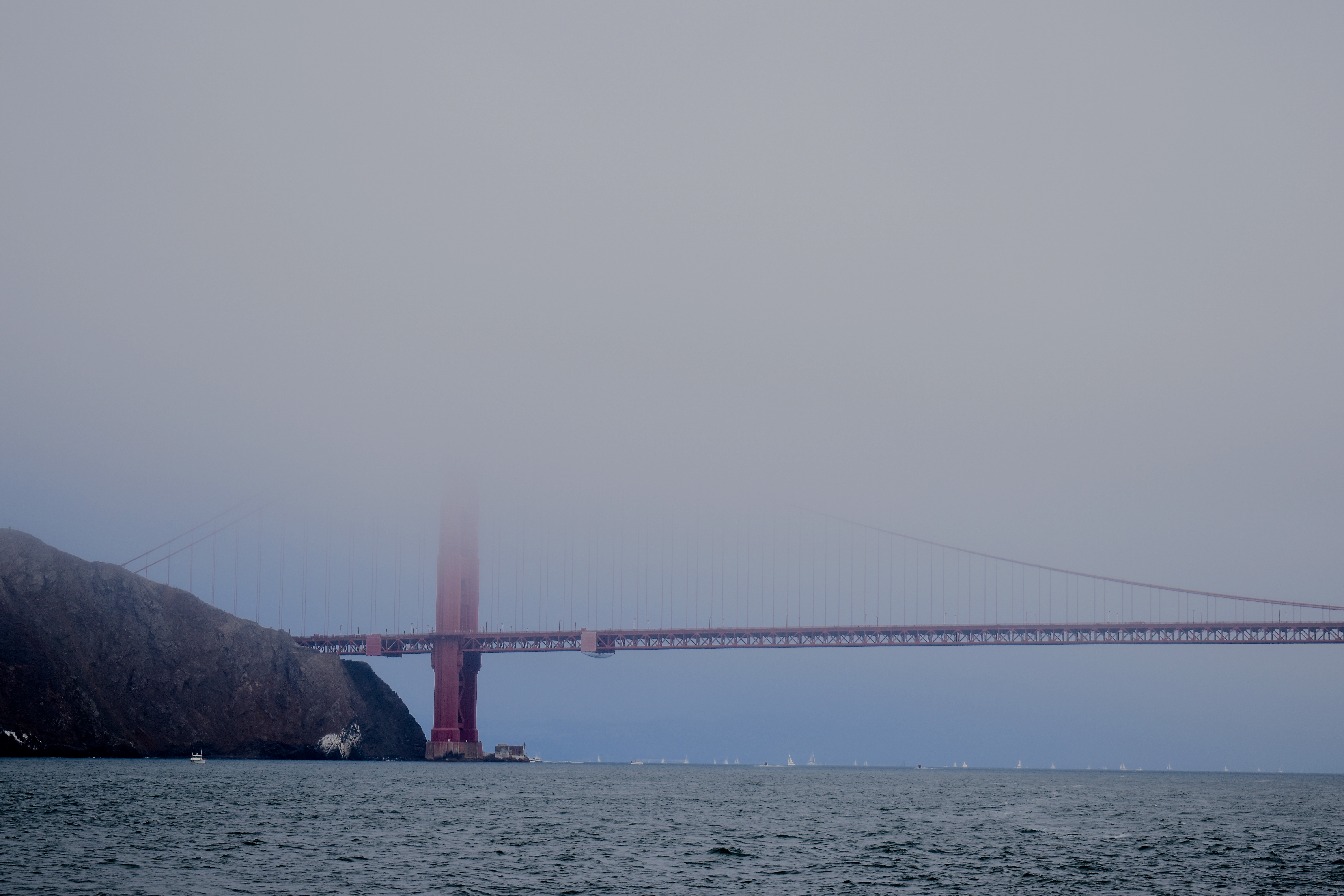 Approaching the bridge in the usual fog.