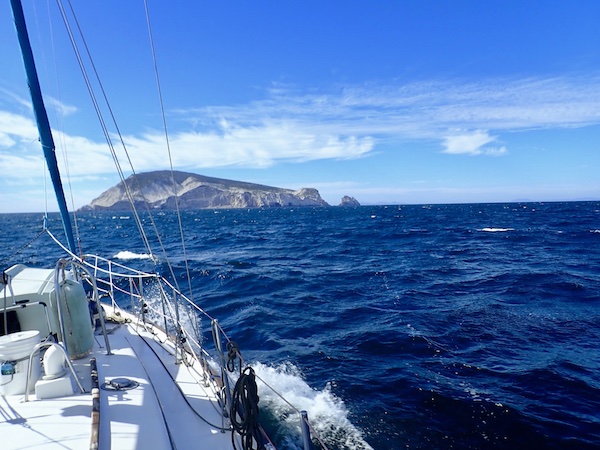 Weather patterns during the winter here are, in a word, dynamic. They change rapidly and predictions more than a day in advance may not hold true. That happens on the regular in the winter in the Sea of Cortez and it’s almost a certainty that winds that develop will be higher than predicted, with the accompanying higher-than-predicted seas. That’s happened so often that we just count on it now and if it doesn’t come to pass, well good then. Two years ago you couldn’t have paid me to take this chance. I would have felt like it was too risky; the potential pay off not worth what I was sure was going to be hours of “I hate this why am I here what is wrong with me that I would agree to this?”. Two and a half years into this cruising thing and my tolerance for discomfort has gone way up. It was a no brainer this year. Yeah, the last two hours were not that much fun, but it was a small price to pay. So here we are.